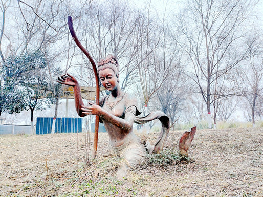 雪,公園印象(攝影配詩(shī))2024-01-29宋體(一)銅塑這是滿目凋零季節(jié),你雙手捧著一條魚,是祭祀這隆冬,還是獻(xiàn)給多情的大地,你是敦煌的飛天吧?一身染塵尚未洗滌。啊,你是雪野圣女,這荒草凄涼之所,你扎根泥土有何深意?戀就戀這一方熱土,待到春暖花開時(shí)節(jié),你著春綠飛向天際...