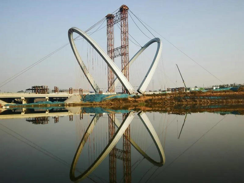10月24日上午,隨著千斤頂將鋼拱塔拉向設(shè)計(jì)位置,標(biāo)志著由中鐵九橋華北分公司承建的新密溱水橋順利豎轉(zhuǎn)到位,成功合龍。至此,新密新添一座地標(biāo)性文化建筑。公司首次在新密溱水橋?qū)嵤?yīng)用國(guó)內(nèi)先進(jìn)技術(shù)——斜拉橋雙斜拱塔對(duì)稱同步豎轉(zhuǎn)施工工法并取得圓滿成功,這是繼太原迎賓橋獨(dú)塔豎轉(zhuǎn)施工工法成功應(yīng)用之后的又一重大施工技術(shù)突破。