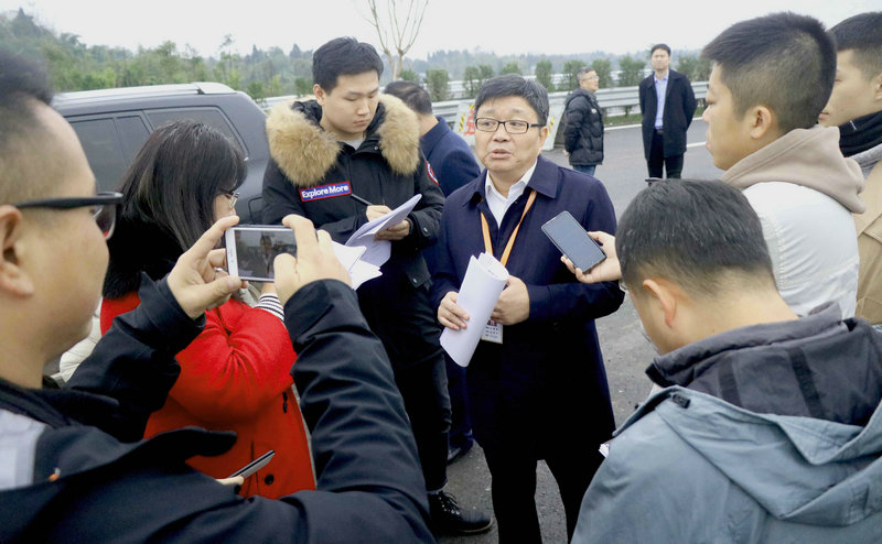 11月27日,由新華社、光明日?qǐng)?bào)、中新社、中央電視臺(tái)、重慶電視臺(tái)、重慶日?qǐng)?bào)、央廣網(wǎng)、華龍網(wǎng)、大渝網(wǎng)、上游新聞網(wǎng)等十多家媒體組團(tuán)采訪,為中國鐵建十五局集團(tuán)作為總承包單位之一的潼榮高速公路最后的沖刺加油鼓勁,為重慶首條被列為交通部綠色公路示范工程的創(chuàng)建把脈言歡。