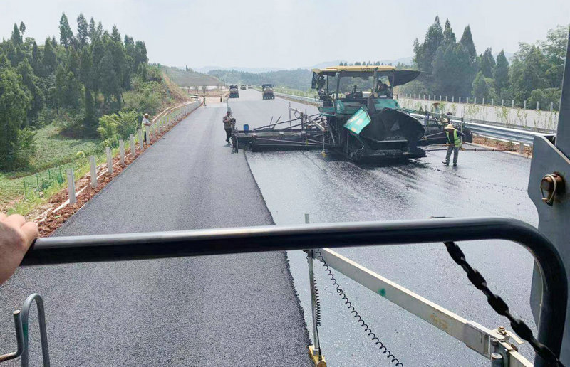 潼榮高速瀝青面層攤鋪進(jìn)行時(shí)