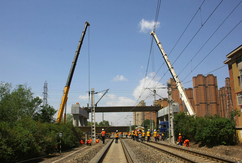 該研究成果,源于哈爾濱市香坊區(qū)境內(nèi)的哈牡電氣化鐵路改造項(xiàng)目,濱綏鐵路K9果園街公鐵立交橋工程。該橋全長(zhǎng)1001.8米,其中第12孔跨越既有濱綏鐵路和香東電氣化鐵路。行車密度大、施工場(chǎng)地狹小、地下光電纜縱橫交錯(cuò)、安全風(fēng)險(xiǎn)居高不下,直接影響鐵路行車安全,備受關(guān)注。