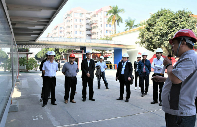 10日上午,調(diào)研組一行在中鐵建華南公司領(lǐng)導(dǎo)的陪同下,首先到地鐵18/22號線番禺廣場站施工工地進(jìn)行了現(xiàn)場調(diào)研,聽取了工區(qū)管理人員對番禺廣場站的施工建設(shè)情況和“雙融合雙轉(zhuǎn)化”黨建實(shí)踐基地等情況匯報(bào),查看了車站深基坑開挖,對項(xiàng)目的安全質(zhì)量、施工管理和黨建融合發(fā)展等各項(xiàng)工作給與了較高評價(jià)。