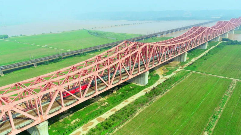 鄭州黃河兩岸郁郁蔥蔥 極目而望,橙紅色的京廣鐵路黃河大橋橫跨南北 在炎黃二帝像的注目下 守護(hù)著一列列火車安全通過(guò)
