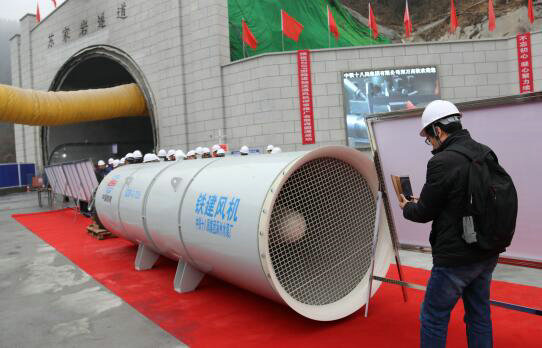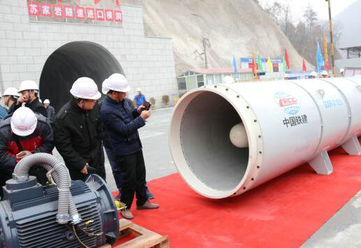 中鐵十八局集團(tuán)物貿(mào)公司涿州水泵廠生產(chǎn)的SDDF-3 11A隧道軸流通風(fēng)機(jī)應(yīng)用于鄭萬(wàn)高鐵蘇家?guī)r隧道(伍振 琚麗君 付寶強(qiáng) 攝)