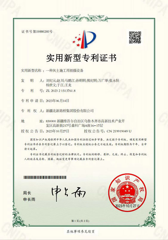 近日,從國(guó)家知識(shí)產(chǎn)權(quán)局獲知,由北新融建公司安徽宿固高速公路TJ04合同段項(xiàng)目申報(bào)的《一種灰土施工用拍攝設(shè)備》《一種裝配式涵洞拼接定位結(jié)構(gòu)》兩項(xiàng)創(chuàng)新成果獲得實(shí)用新型專利授權(quán),北新融建公司本年度共計(jì)取得實(shí)用新型專利授權(quán)7項(xiàng)。