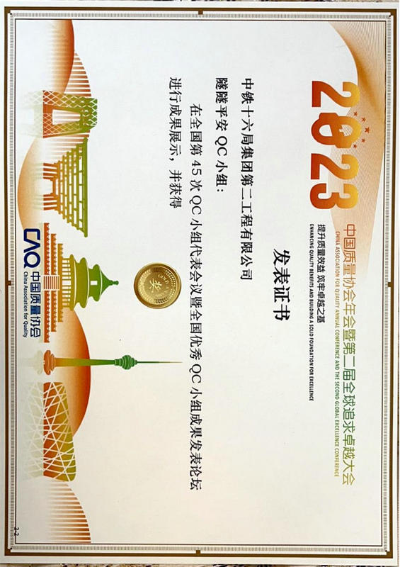 40年來,二公司人本著改進質(zhì)量、節(jié)能降耗、降本提效為導向,立足施工現(xiàn)場實際、運用質(zhì)量管理理論和方法開展小組活動,一代代QC人從管理和技術(shù)方面開拓創(chuàng)新、務(wù)實進取,用“QC的智慧”,攻堅克難,解決施工中的一個又一個難題,提升企業(yè)質(zhì)量管理水平。在2023年度天津市建設(shè)系統(tǒng)質(zhì)量管理小組優(yōu)秀成果展播中獲“特別優(yōu)秀獎”,在中國建筑業(yè)協(xié)會以小組第一的成績被推薦為“全國優(yōu)秀質(zhì)量管理小組”的隧隧平安QC小組,以《降低隧道淺埋段土石交界圍巖初支變形量》為課題研究方向,針對項目蓮花山隧道暗洞部分穿越圍巖破碎帶、礦坑、落水洞溶洞、煤礦巷道采空區(qū)、土石交接淺埋段等地段,施工安全風險大、技術(shù)難度高,施工中遇到淺埋、初支變形量大等難題開展小組活動, 采取拱頂補強注漿、改變開挖工法等措施,達到了控制初支變形量、保持綠色安全施工狀態(tài)、節(jié)約成本、實現(xiàn)提“質(zhì)”促“效”的目標。