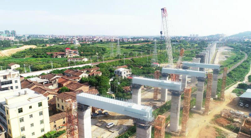 圖1:跨杭深線鋼蓋梁吊裝完成圖