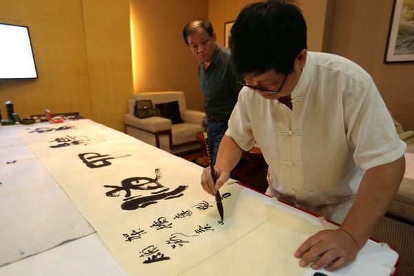 劉世平現(xiàn)場(chǎng)揮毫潑墨。