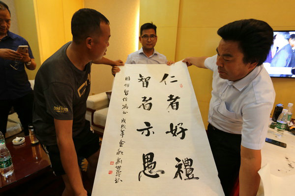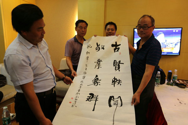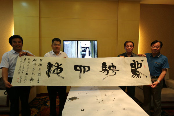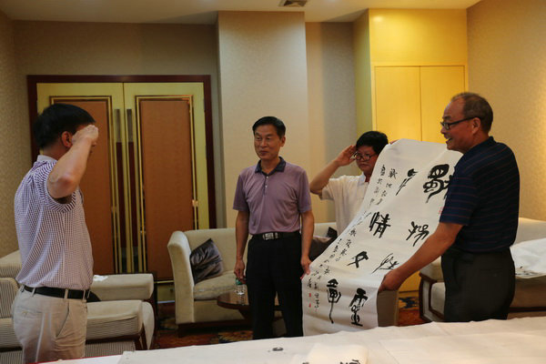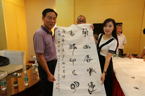 公安縣文聯(lián)主席、書(shū)法家劉世平為公司贈(zèng)送書(shū)畫(huà)。