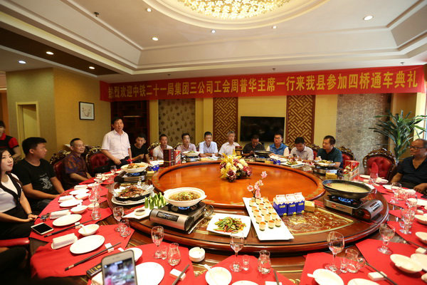 2016年3月,曾經(jīng)的鐵道兵48團(tuán),現(xiàn)在的中鐵二十一局三公司進(jìn)入湖北荊州建筑市場(chǎng),承建公安縣351國(guó)道黃金口特大橋、毛家港大橋、斑竹垱大橋,以及公安縣355省道洈水河等四座大橋。2018年8月18日,在建設(shè)者的辛勤努力下,這四座大橋按期通車(chē)。原48團(tuán)參謀長(zhǎng)、三公司副處長(zhǎng)楊德榮,48團(tuán)軍務(wù)股股長(zhǎng)、三公司勞資科科長(zhǎng)李天勝,48團(tuán)軍需股正連職助理員程文財(cái)、老戰(zhàn)士賀正海、張永華、劉世平應(yīng)邀參加通車(chē)慶典活動(dòng),老領(lǐng)導(dǎo)老戰(zhàn)友們與公司工會(huì)主席周普華、公司鐵道兵老同志和項(xiàng)目部員工在會(huì)議室進(jìn)行了簡(jiǎn)短的交談,暢敘戰(zhàn)友情誼,中午在項(xiàng)目部用餐。19日中午,公安籍鐵道兵老領(lǐng)導(dǎo)、老戰(zhàn)友為盡地主之誼,一再邀請(qǐng)公司工會(huì)主席周普華一行以及公安項(xiàng)目部班子成員、各部室負(fù)責(zé)人、工區(qū)長(zhǎng)到三袁國(guó)際大酒店相聚。在昨天6名老戰(zhàn)友的基礎(chǔ)上,又邀請(qǐng)了肖文斌、李運(yùn)新兩名老戰(zhàn)友參加。