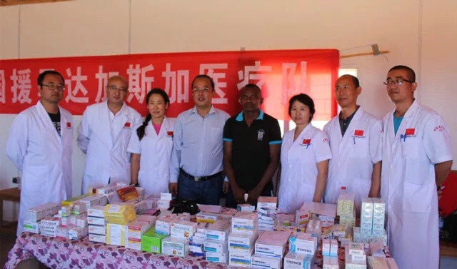 中國(guó)醫(yī)療隊(duì)在中鐵十八局馬達(dá)加斯加9號(hào)公路項(xiàng)目部與參建員工合影