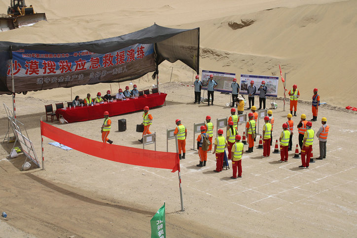 活動儀式上,項目經(jīng)理對演練活動作了動員和部署,要求項目安全管理相關(guān)人員按照《應(yīng)急預(yù)案活動方案》的安排有序開展各項活動,在思想上筑牢安全生產(chǎn)意識,全面落實隱患整改,確保公司安全生產(chǎn)工作平穩(wěn)運行。整場演練從沙漠發(fā)生人員走失、先期處置、預(yù)案啟動,到聯(lián)合處置、信息上報、人員搜救、應(yīng)急救護,處處都展現(xiàn)出了快捷、高效、合規(guī)的特點,受到了在場各單位點評人員的肯定與好評。
