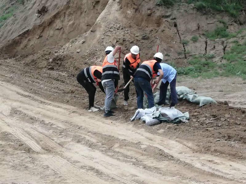 在防洪防汛演練中,現(xiàn)場人員發(fā)現(xiàn)洪水險情,急忙喊“洪水來了,洪水來了”,現(xiàn)場總指揮立即啟動應(yīng)急救援預(yù)案,安全警戒組立即封閉現(xiàn)場組織人員疏散,物資保障組立即運送防汛物資到現(xiàn)場,搶險救災(zāi)組立即趕往現(xiàn)場搶險,對施工區(qū)域堆碼沙袋,保護施工區(qū)域,醫(yī)療組現(xiàn)場待命,隨時準備救治傷員,險情排除后防洪防汛演練結(jié)束。