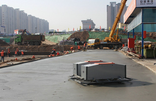 據(jù)悉,此次引進(jìn)“上崗”使用的混凝土地面施工系列機(jī)器人由激光地面整平機(jī)器、履帶抹平機(jī)器人及地面抹光機(jī)器人三套設(shè)備組成,適合于大跨度地下及地上建筑地面施工,正常施工條件下可實(shí)現(xiàn)24小時(shí)施工作業(yè)。其中,激光地面整平機(jī)器人用于混凝土澆筑后,對地面進(jìn)行高精度整平施工,施工時(shí),操作人員無需進(jìn)入混凝土澆筑區(qū)域,通過遙控或者提前進(jìn)行AI設(shè)定,機(jī)器人便可自動進(jìn)行高精度找平施工,它施工的精度能從傳統(tǒng)人工的10毫米提升到4毫米以內(nèi),時(shí)節(jié)約人力3-5人。履帶抹平機(jī)器人用于對地面進(jìn)行提漿、收面、壓實(shí)等施工作業(yè),它有一個(gè)靈活的“圓型手掌”,可以高效的為混凝土面抹平、定型,操作人員設(shè)定好需要的數(shù)值后,遙控操作機(jī)器人不用花大力氣即能輕松將混凝土抹平,效率是人工的2-3倍。地面抹光機(jī)器人主要用于地面收光、壓實(shí)施工作業(yè),它行動迅速,所過之處皆變光滑,采用遙控操作后,作業(yè)面不留腳印,效果好、效率高,是人工的3-5倍,根據(jù)現(xiàn)場實(shí)施效果,十五分鐘可以完成120㎡的整平工作。