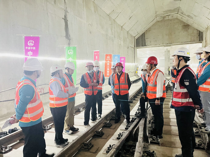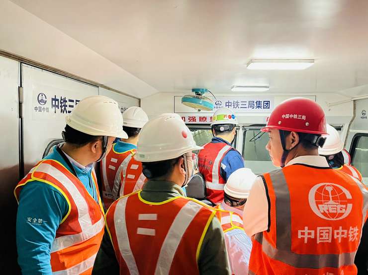 港鐵中鐵電化軌道交通(深圳)有限公司總經(jīng)理孟榮輝、副總-建設(shè)吳啟中、安全總監(jiān)蔡偉森、副總-設(shè)計(jì)王昭斌,中鐵三局集團(tuán)線橋有限公司總經(jīng)理齊長寧、副總經(jīng)理邸向軍等相關(guān)領(lǐng)導(dǎo)蒞臨參加了短軌鋪通儀式,從深圳灣口岸站乘坐新能源軌道車至科苑站。在所有建設(shè)、運(yùn)輸作業(yè)人員的精誠配合下,軌道車在安全可靠的軌道限界內(nèi)平穩(wěn)順暢運(yùn)行,孟總對(duì)鋪軌成果表示十分滿意,并對(duì)全體運(yùn)輸人員的標(biāo)準(zhǔn)化作業(yè)模式致以贊揚(yáng)。儀式完成后,孟總再次強(qiáng)調(diào)要高度重視安全生產(chǎn)工作、嚴(yán)格把控安全隱患風(fēng)險(xiǎn),以安全生產(chǎn)為準(zhǔn)繩為深圳城市軌道交通13號(hào)線早日開通筑牢安全保障。