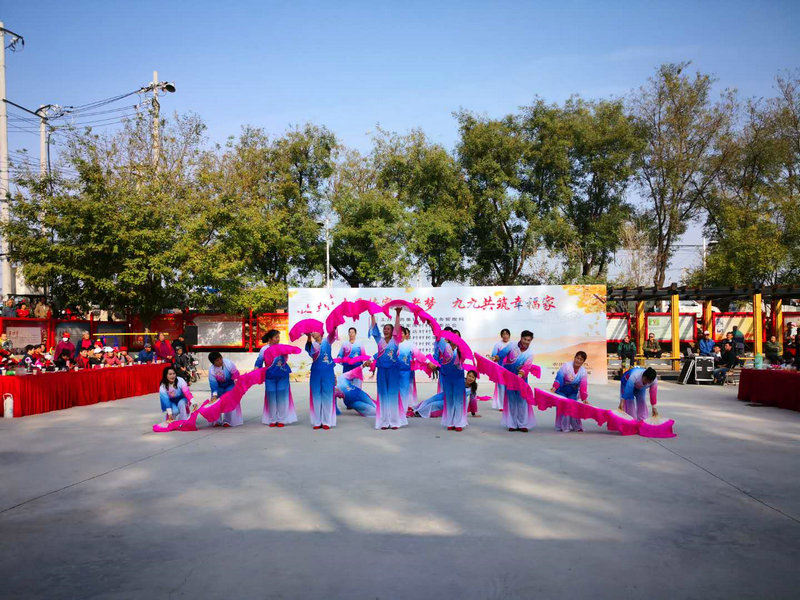 活動中,大灰店社區(qū)的傳統(tǒng)民俗文化小車會令人印象深刻,每個角色以細(xì)膩的表情、夸張的動作,以帶有戲劇性的傳統(tǒng)舞蹈方式把故事呈現(xiàn)給觀眾,體現(xiàn)民俗文化,極具觀賞價值。武辛莊的多彩的風(fēng)車令人眼花繚亂,回顧童年趣事,讓人心情愉悅。春曉事務(wù)所楊靜老師以問答的形式,講解了重陽節(jié)的來歷和習(xí)俗,并在菊花茶的淡淡清香中與老年人趣味互動,歡聲笑語,掌聲連連。緊接著,一場呂家灣舞蹈隊的《健康走出來》展現(xiàn)出老年人的“精氣神兒”,盡情展示了老年人張揚個性、老有所為、老有所樂的夕陽風(fēng)采!呂家灣村的女生二重唱《愛的奉獻(xiàn)》,唱出對老年人的敬愛與奉獻(xiàn),弘揚志愿助老的精神。王莊秧歌隊的《美在西集》在歡快的曲調(diào)、優(yōu)美的舞姿中展現(xiàn)了西集人民以開放創(chuàng)新、和諧奮進(jìn)的精神風(fēng)貌。