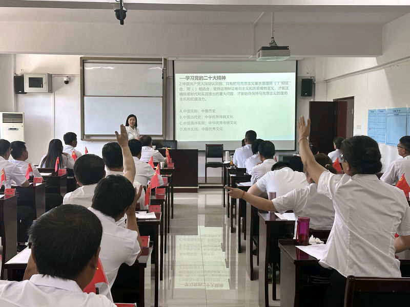 在培訓(xùn)課堂上,黨校教授以其深厚的黨性修養(yǎng)和文化底蘊(yùn)為學(xué)員們細(xì)致宣講了黨的二十大精神、習(xí)近平新時代中國特色社會主義思想、《黨章》、《百年黨史》、《中國共產(chǎn)黨紀(jì)律處分條例》等黨的理論知識,課后通過知識競答進(jìn)一步激發(fā)了學(xué)員的學(xué)習(xí)熱情、鞏固了課堂知識,通過團(tuán)建活動增加了學(xué)員的團(tuán)結(jié)協(xié)作精神和愛國愛黨精神。
