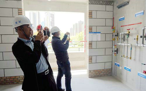 來到樓宇內(nèi)的四大“亮點”展示區(qū)域一一探訪,不難發(fā)現(xiàn),標(biāo)準(zhǔn)化施工、節(jié)能環(huán)保、安全、質(zhì)量管理、新技術(shù)應(yīng)用等一系列施工工藝和新技術(shù)應(yīng)用與工程建設(shè)實現(xiàn)的深度融合,正是項目部引來榆林市住建行業(yè)各級主管部門及建設(shè)、施工、監(jiān)理、勘察及行業(yè)協(xié)會等超500人觀摩團(tuán)嘖嘖稱贊的關(guān)鍵。