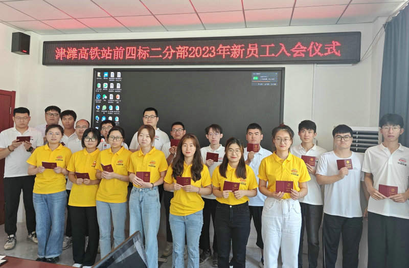 2023年夏季,中鐵十五局五公司共有160多名新員工入職。為實現(xiàn)“入職”即“入會”的目標(biāo),該公司在迎新活動中就組織學(xué)習(xí)了《中國工會章程》,讓大家對工會組織的性質(zhì)、職能,會員權(quán)利、義務(wù)以及入會條件、程序等有一個深入的理解和認識。在分配到各基層單位之后,為強化新員工的會員意識,提高他們對工會組織的認知度,各單位都為新員工舉行了嚴肅認真的入會儀式,并發(fā)放《會員證》和《中華人民共和國工會法》。