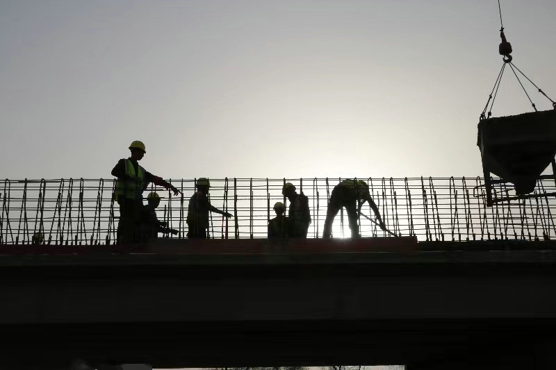 隨后,全體參建者連續(xù)奮戰(zhàn)了20天,向時(shí)間要進(jìn)度。每天八點(diǎn)開(kāi)工、中午不停工、晚上奮戰(zhàn)到十點(diǎn),天天如此。為最大限度給日間墩柱混凝土澆筑預(yù)留時(shí)間,混凝土拌和站、預(yù)制梁場(chǎng)、鋼筋廠、模板綁扎等都安排在夜間進(jìn)行,每位參建者的眼中都熬出了血絲,經(jīng)過(guò)大家不懈的努力和付出,創(chuàng)造了工程量同比日常多完成110%的新紀(jì)錄。
