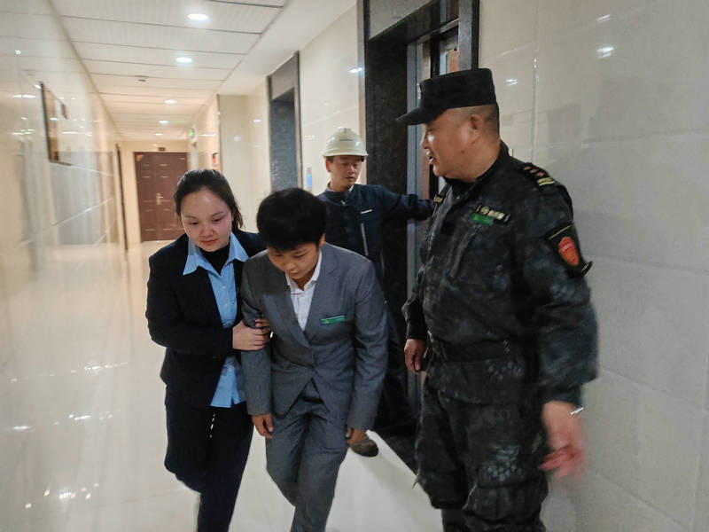 演練開始,由1名物業(yè)工作人員充當(dāng)被困人員,模擬在乘梯時突遇電梯故障導(dǎo)致被困,且電梯停止在樓層中間的突發(fā)狀況。被困人員按下警鈴報警,與物業(yè)監(jiān)控室對講;敘述被困情況,請求救援;監(jiān)控室應(yīng)急值守人員接警后立即通知電梯維保公司,電梯安全員和項(xiàng)目負(fù)責(zé)人啟動“電梯安全應(yīng)急預(yù)案”。在等待救援人員到達(dá)現(xiàn)場期間,監(jiān)控室人員提醒被困人員“不要慌張,不要強(qiáng)行扒門,專業(yè)救援人員會馬上到達(dá)現(xiàn)場”,并時刻保持與被困人員聯(lián)系,密切關(guān)注被困人員情況。
