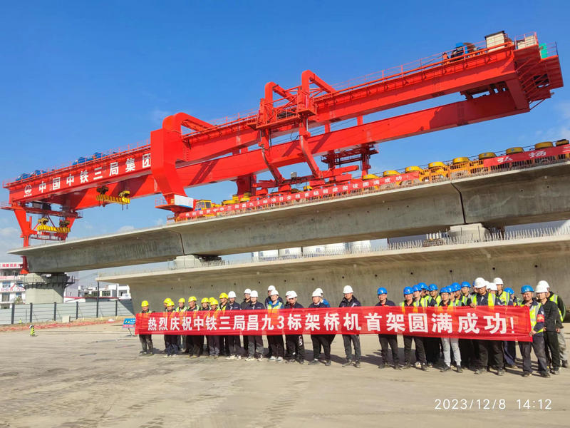 (江西新建訊)12月8日上午11點,在中鐵三局線橋公司昌九3標項目現場,JQ900B架橋機將長32米,重達600多噸的的箱梁精準、平穩(wěn)地落在497#-498#橋墩上,標志著JQ900B架橋機圓滿完成首架,為項目順利完成施工任務奠定了堅實基礎。