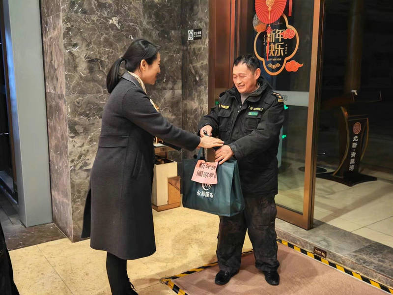 2月9日除夕夜8點(diǎn),小區(qū)內(nèi)燈籠高掛,彩燈亮堂,處處洋溢著濃濃的節(jié)日氛圍,宜邦物業(yè)公司項(xiàng)目經(jīng)理及項(xiàng)目主管攜帶分包好的慰問品并逐一將慰問品親手遞交至小區(qū)各崗位在崗職工,表達(dá)著公司對除夕夜奮戰(zhàn)在一線崗位員工的關(guān)心和關(guān)愛,并送去了新春祝福。此次慰問不僅包括物質(zhì)關(guān)懷,更涵蓋了深層次的精神撫慰,旨在提升團(tuán)隊(duì)的凝聚力和向心力。讓大家在工作崗位上也能感受到家的溫暖。