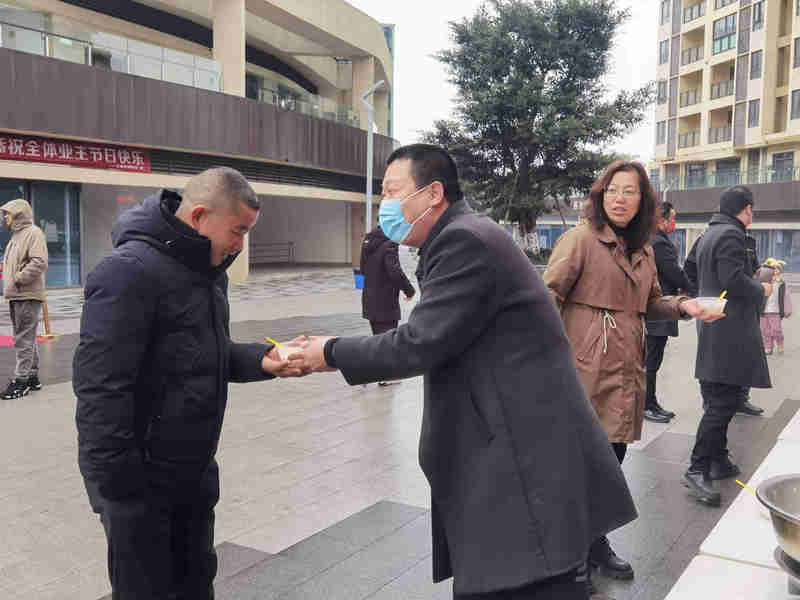 “李奶奶,快、請嘗嘗這是我們自己做的湯圓。王先生,您也嘗嘗。”—— 元宵節(jié)當天,宜邦物業(yè)為小區(qū)業(yè)主準備了足夠的湯圓,并讓工作人員早早將制作好的湯圓裝入碗中親手遞送到來到現(xiàn)場的每一位業(yè)主手中。品湯圓是元宵節(jié)不可或缺的傳統(tǒng)習(xí)俗,甜美可口的湯圓延續(xù)著新年的味道,寓意著團圓和美滿。雖然在氣溫不足7℃的天氣下,但業(yè)主們參加活動的熱情依然高漲。