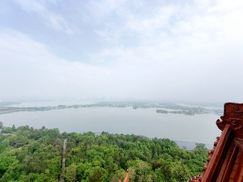 戰(zhàn)友們一行先行來(lái)到了楚天臺(tái)景點(diǎn)。楚天臺(tái)景點(diǎn)是東湖磨山楚文化游覽區(qū)內(nèi)的標(biāo)志性建筑,可與江南三大名樓媲美。屹立于磨山第二主峰,仿古章華臺(tái)形制而建,高35.26米,樓頂安置1.2米高銅鳳一只,正面墻上鑲有用600多塊天然大理石拼成的“楚天仙境丹鳳朝陽(yáng)”圖案,為楚天一絕。整樓面積2260平方米,外五內(nèi)六層,每天定時(shí)表演編鐘樂(lè)舞,展出楚國(guó)出土的大批文物復(fù)仿制品。站在高高的楚天臺(tái)上,可鳥瞰東湖全景。登樓遠(yuǎn)眺,目及所處,盡收眼底,給人以心曠神怡之感。