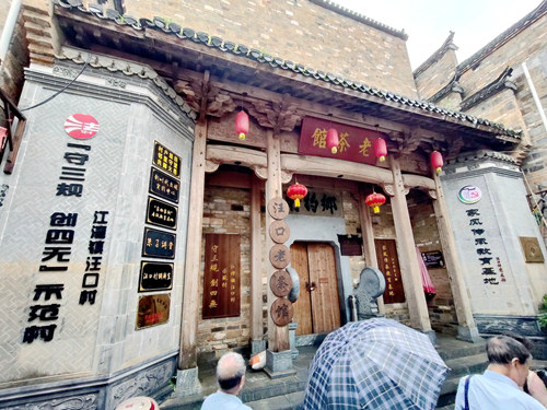 江灣的建筑布局卓具特色,一街六巷,縱橫交錯,新舊有序,千年延展,不亂方陣。且每條巷道各有個性,不見雷同,古樸優(yōu)雅,自成一景。從后龍山俯瞰,正中部位的巷道,竟構(gòu)成一個碩大的"安"字。江灣的老街還保持著明清時期的風(fēng)韻,街面還是那么窄,幾幢老店鋪,如培心堂、飲蘇堂、日生堂,店門還是那一塊塊拼起的木板排門,店堂里還是那老柜臺、老貨架,外墻還是那古老的封火墻,徜徉其中,我們仿佛穿行于時間隧道,仍可感受到一些古江灣明清時期的商業(yè)氣息。