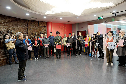 之一:4月8日組團(tuán)后,戰(zhàn)友、軍嫂、鐵二代等分別從全國各地齊聚北京;4月9日,按原計劃參觀“鐵道兵紀(jì)念館”暨“中國鐵建展覽館”。參觀之前,馮復(fù)加、李武斌(由女兒陪同)、劉勝等當(dāng)代著名詩人先后來到了戰(zhàn)友們中間,并把劉勝主筆、集體創(chuàng)作的《鐵道兵組歌》贈送給了鐵道兵紀(jì)念館,無疑為這次“鐵色之旅”活動增色不少。——這是首先沒有想到的!
