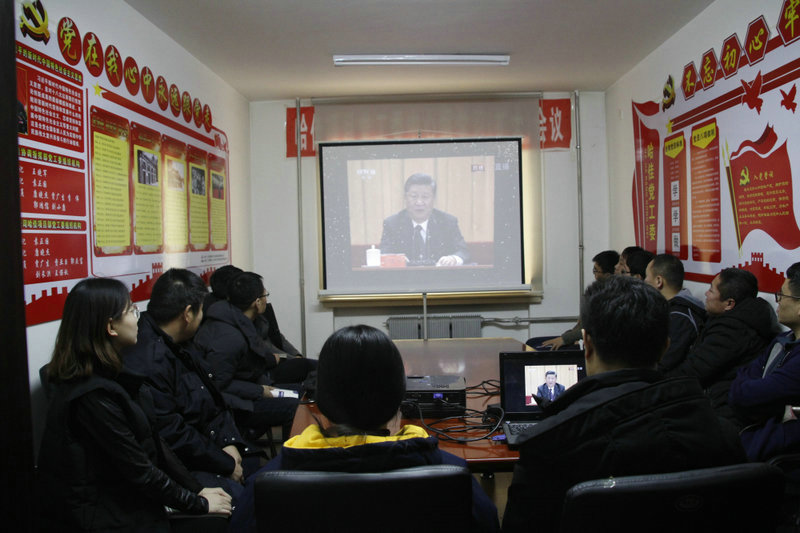 二公司哈佳項(xiàng)目部18名黨員聚精會(huì)神觀看改革開放40周年大會(huì)