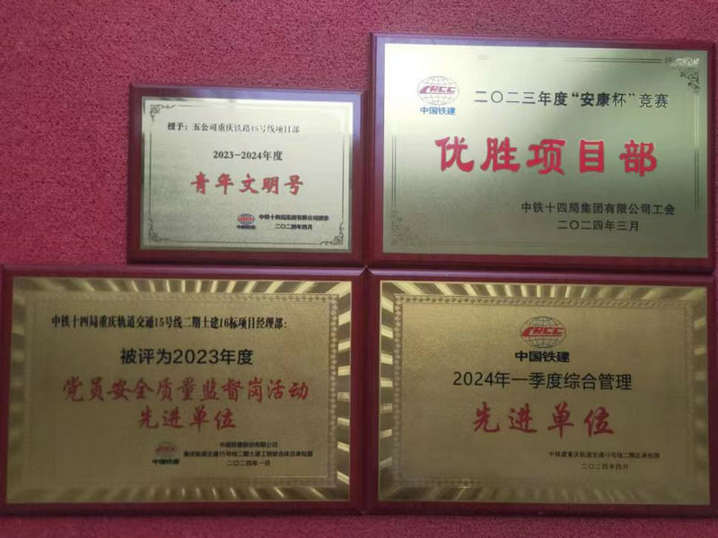 項目部先后榮獲第六屆“優(yōu)路杯”全國BIM技術(shù)大賽優(yōu)秀獎,中施企協(xié)綠色建造過程評價“三星”級,重慶市建設(shè)工程施工質(zhì)量安全管理總站“揚塵控制示范工地”,重慶市鐵路集團年度軌道交通建設(shè)”先進施工單位”“先鋒工地”,中鐵十四局集團“安康杯”競賽優(yōu)勝項目部,技術(shù)創(chuàng)新管理先進單位”,“安全生產(chǎn)先進單位”等榮譽稱號, 總之,“五亮五共”活動有助于充分發(fā)揮黨支部的戰(zhàn)斗堡壘作用和黨員的先鋒模范作用,為重慶軌道交通15號線的建設(shè)提供堅實保障。項目施工的物流園北站至井口站區(qū)間雙線盾構(gòu)提前順利貫通,兩座高架橋和路基主體工程提前完成,中梁山隧道進出口安全優(yōu)質(zhì)高效推進。 目前,在推進精細化施工和“決戰(zhàn)120天,決勝年度任務(wù)”活動的過程中,項目部進一步細化方案、激勵措施、強化機制、明確責(zé)任等方面持續(xù)發(fā)力,真正把巴渝快軌建設(shè)成為上級單位的放心項目,重慶市民的滿意工程。(文/杜曉言、林赤喜 圖/楊笙峰、高花花)