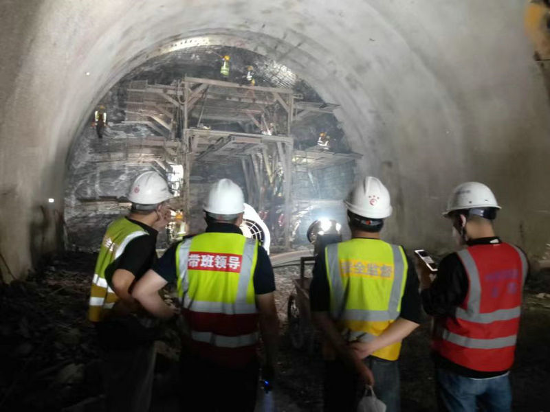 關(guān)鍵點,勤盯控。項目“黨員安全質(zhì)量監(jiān)督崗”聯(lián)合監(jiān)理在中梁山隧道掌子面跟班作業(yè),神秘的身影將施工場面點綴的格外耀眼。