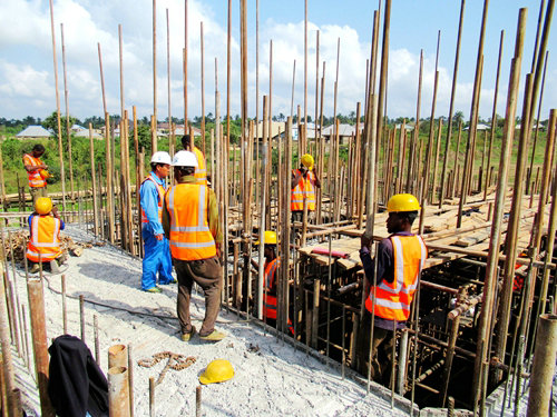 在保證施工的同時,他們逐步拓展市場調(diào)查渠道。三番五次討價之后,也會采用一定策略:明知道價格較高,就一定要限期免費送貨,進而延遲付款,否則中斷生意往來。掌握了這些,當?shù)厣虘粢仓荒艽饝?。同時,采購渠道拓寬,延長到200公里外的拉各斯市場進行采購,因為只有拉各斯才有中方供應商。至今,項目部所用的實驗儀器、食堂炊具和各種型號的模板均已通過國內(nèi)發(fā)貨用在了國外的項目上。廣開招工渠道,滿足施工需要