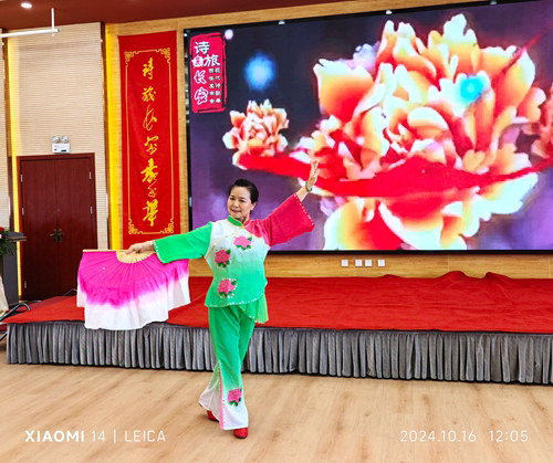 王海霞、白保存兩位學(xué)兵配合默契,主持文藝演出恰到好處,歌舞、獨(dú)唱、詩朗誦、男女二重唱、女聲小合唱、板胡獨(dú)奏、方言朗誦、即興情景劇等形式的節(jié)目一個(gè)接著一個(gè),異彩紛呈,為《不朽的軍魂·現(xiàn)代詩歌卷》的新書發(fā)布會起到了推波助瀾的作用。主持詞的開場白說:金秋十月,金風(fēng)送爽;鐵兵戰(zhàn)友,歡聚一堂。正如詩壇宿將邱光明戰(zhàn)友撰寫的楹聯(lián):“詩旅長安,攜漢風(fēng)唐韻,歌越千載,留幾段佳話傳華夏;情牽老鐵,唱云路星橋,志在四方,引一卷豪吟上碧霄!”八百里秦川歡迎你,奏一曲《渭水秋歌》;十三朝古都?xì)g迎你,唱一曲《山水長安》;陜西的鐵兵學(xué)兵歡迎你,問一聲戰(zhàn)友你好;西安的軍嫂兵妹歡迎你,擺一桌熱騰騰的油糕。最重終要表達(dá)的是:西安歡迎你!