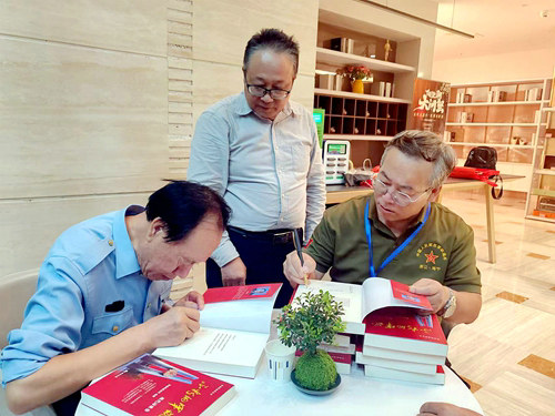 來自出席會議的老兵單位、三線學(xué)兵單位的代表和社會各界熱心的王紅旗、孫震、曹祜、陳家順、常揚(yáng)、朱經(jīng)建、蘇靈、李春芝等上臺接受了贈書。