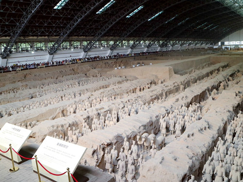 首先,大巴先來到西安秦始皇帝陵博物館,饒有興致的參觀了兵馬俑。兵馬俑,即秦始皇兵馬俑,簡稱秦兵馬俑或秦俑,又被稱為“復(fù)活兵團(tuán)”,是古代墓葬雕塑的一個(gè)類別,位于今陜西省西安市臨潼區(qū)秦始皇陵以東1.5公里處的兵馬俑坑內(nèi),是第一批全國重點(diǎn)文物保護(hù)單位、第一批中國世界遺產(chǎn),被譽(yù)為“世界第八大奇跡”。