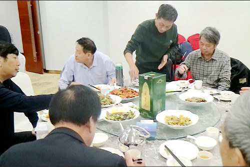 踏上歸程,晚上6點回到酒店,一席簡單而隆重的盛宴等待著戰(zhàn)友們。陜西省鐵道兵戰(zhàn)友聯(lián)誼會副會長袁武學戰(zhàn)友早早就等在酒店。
