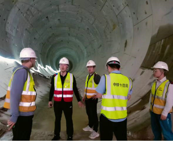 項目經(jīng)理阮超(左二)帶班檢查盾構(gòu)施工安全和質(zhì)量