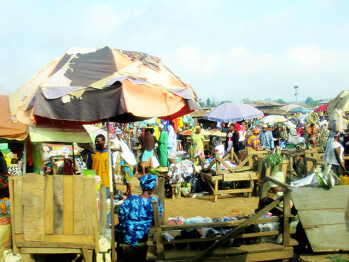 伊巴丹市場一角(定期有集市,市場中到處充滿了英語的討價還價之聲)