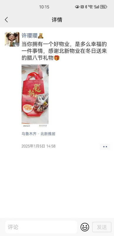 此次臘八送粥活動(dòng),不僅讓業(yè)主們在寒冷的冬日里品嘗到了傳統(tǒng)美食,更是拉近了物業(yè)與業(yè)主之間的距離,增強(qiáng)了社區(qū)的凝聚力和歸屬感。北新雅居宜邦物業(yè)負(fù)責(zé)人表示,今后將繼續(xù)秉持“業(yè)主至上,服務(wù)第一”的理念,舉辦更多類似的暖心活動(dòng),為業(yè)主們營造溫馨、和諧、美好的居住環(huán)境,與業(yè)主攜手共度每一個(gè)溫暖的節(jié)日和美好的時(shí)光。