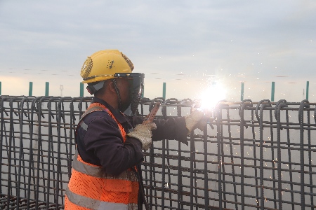 沙特TS-8高速公路項(xiàng)目S3橋?yàn)殡p向兩跨預(yù)制T梁橋,全長(zhǎng)54.85米,共28片梁。架設(shè)T梁長(zhǎng)度26.995米,高度1.590米,每片梁混凝土22.67立方米,鋼筋4.134噸,重56.7噸。這樣的橋在國(guó)內(nèi)只算一個(gè)小工程,根本沒(méi)什么特別的地方。但在沙特,該橋卻受到業(yè)主的高度關(guān)注,主要是該橋上跨TS-8高速公路主線,是進(jìn)入沙特朱拜爾工業(yè)區(qū)的主要樞紐之一;另外沙特氣候炎熱、沙塵暴天氣時(shí)有發(fā)生,來(lái)往車(chē)輛較多,施工干擾大。面對(duì)工期緊、任務(wù)重的實(shí)際情況,中鐵十八局沙特公司高度重視,進(jìn)一步優(yōu)化施工方案,科學(xué)施工,確保了該橋架梁施工節(jié)點(diǎn)工期的順利完成。