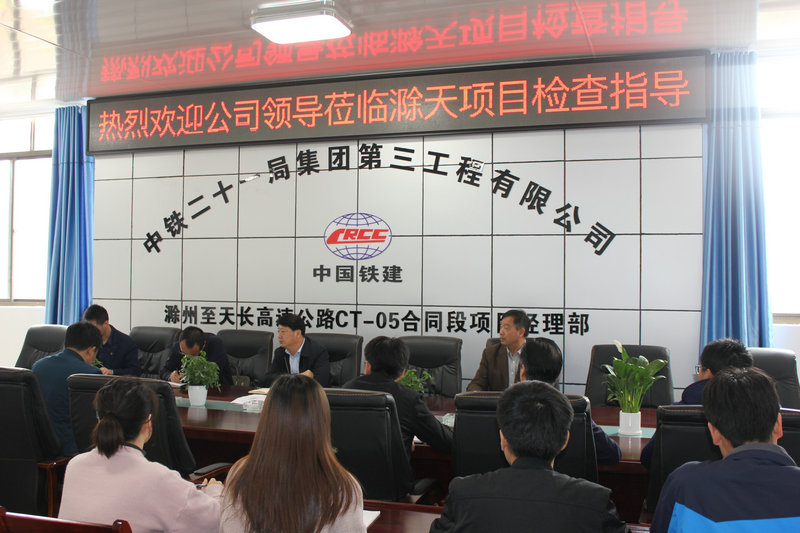 三月的皖東,鳥(niǎo)語(yǔ)花香。3月28日,中鐵二十一局三公司黨委書(shū)記、董事長(zhǎng)莊乾理到滁天高速項(xiàng)目檢查指導(dǎo)工作,總經(jīng)理助理刁曉利、辦公室主任李興軍、項(xiàng)目經(jīng)理雒曉亮、書(shū)記于喜田等陪同檢查。