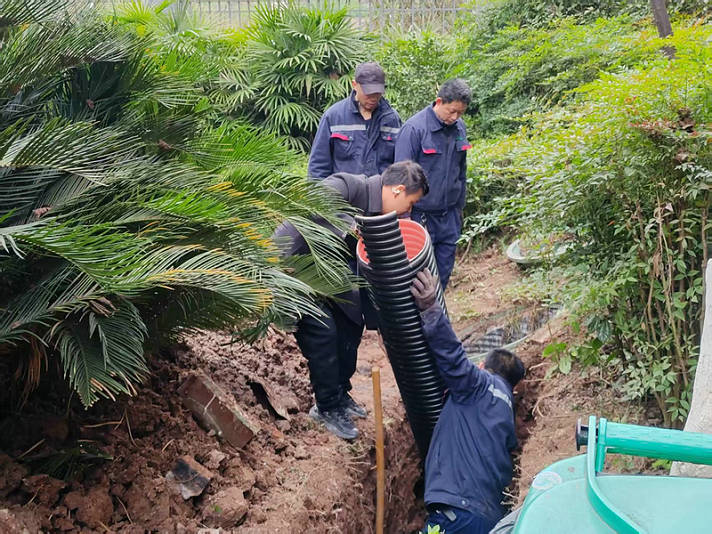 維養(yǎng)部在接到問題反饋后,第一時(shí)間響應(yīng),迅速安排人員進(jìn)行疏通。然而,常規(guī)的疏通手段面對(duì)此復(fù)雜管道狀況,難以觸及根本問題。為從根源上解決這一困境,維養(yǎng)部深入現(xiàn)場(chǎng)勘查。通過探測(cè)和詳細(xì)分析,確定了沉降造成的管道損壞范圍與程度,據(jù)此制定了科學(xué)嚴(yán)謹(jǐn)?shù)拈_挖處理方案,清理掉因沉降堆積的大量頑固堵塞物,針對(duì)變形破裂的管道進(jìn)行精準(zhǔn)修復(fù)與更換。重新鋪設(shè)管道基礎(chǔ)時(shí),充分考量地基沉降因素,采用加固措施,確?;A(chǔ)穩(wěn)固。同時(shí),依據(jù)專業(yè)標(biāo)準(zhǔn),仔細(xì)調(diào)整管道坡度,保障污水能夠依靠重力順暢排放,最后精心恢復(fù)地面原狀,將施工對(duì)居民生活和小區(qū)環(huán)境的影響降至最低。
