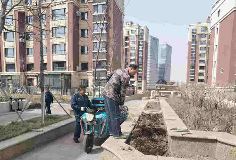 在衛(wèi)生大掃除的同時(shí),破土植綠活動(dòng)也在如火如荼地進(jìn)行著。物業(yè)工作人員和熱心居民們一同拿起鐵鍬、鋤頭,在小區(qū)的花壇、綠地中翻土、挖坑,播撒下春天的希望。