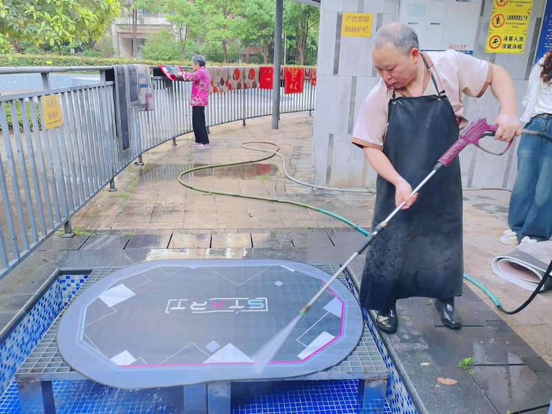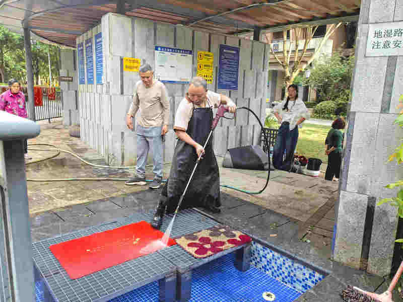 活動(dòng)當(dāng)天,物業(yè)工作人員早早布置好沖洗區(qū)域,配備高壓水槍、刷子、清潔劑等工具,有序?yàn)闃I(yè)主提供地墊深度清潔服務(wù)。從除塵去污到?jīng)_洗晾曬,工作人員細(xì)致周到的服務(wù)讓不少業(yè)主感嘆:“平時(shí)地墊厚重難清洗,物業(yè)這次真是想到我們心坎里了!”活動(dòng)現(xiàn)場還設(shè)置了便民休息區(qū),進(jìn)一步拉近了與業(yè)主的距離。