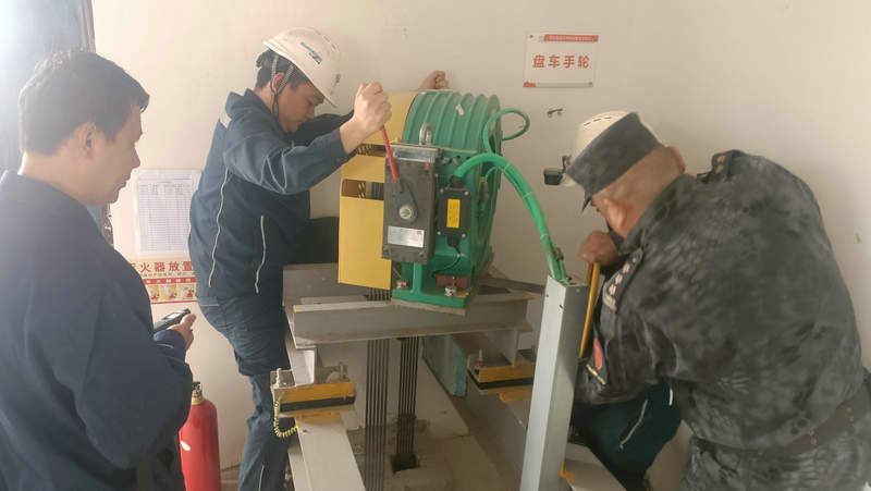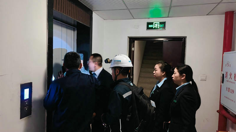 上午9點(diǎn),演練人員準(zhǔn)時(shí)在二街區(qū)物業(yè)服務(wù)中心,總指揮陳連進(jìn)行演練前的重要事項(xiàng)講解及部署,伴隨著演練正式開(kāi)始,物業(yè)消防控制室接到救援通知,緊急上報(bào)當(dāng)班領(lǐng)導(dǎo)并按照救援預(yù)案啟動(dòng)演練;安撫組進(jìn)行現(xiàn)場(chǎng)安撫,緩解被困人員情緒,并告知正確避險(xiǎn)方式;救援組進(jìn)行施救,維保技術(shù)人員嚴(yán)格按照救援操作規(guī)程,在機(jī)房進(jìn)行斷電、松閘、盤車等一系列專業(yè)操作,將轎廂緩慢移動(dòng)至平層位置;醫(yī)療組在被困樓層待命,隨時(shí)處理突發(fā)狀況;在被困人員解救出去后維保單位對(duì)電梯進(jìn)行全面檢查,找出電梯困人原因并對(duì)其進(jìn)行分析和解決,確保電梯后續(xù)正常運(yùn)行。