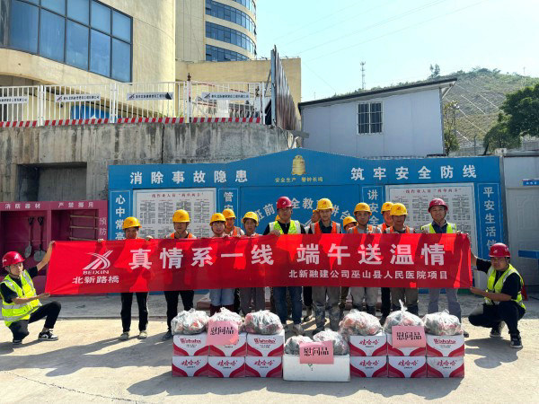 巫山訊(通訊員 陳拉)粽葉飄香時(shí),濃情端午至。在傳統(tǒng)佳節(jié)端午節(jié)來臨之際,北新路橋集團(tuán)北新融建公司巫山縣人民醫(yī)院早陽分院二期建設(shè)項(xiàng)目部組織開展“真情系一線,端午送溫情”慰問活動(dòng),為堅(jiān)守崗位的100余名農(nóng)民工兄弟送上節(jié)日關(guān)懷,讓奮戰(zhàn)在施工一線的建設(shè)者們感受到“家”的溫暖。
