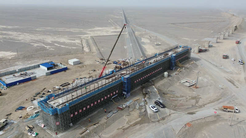 6月7日,羅布泊戈壁腹地,隨著最后一車(chē)混凝土精準(zhǔn)入模,中鐵二十一局承建的羅若鐵路S2標(biāo)段S235線大橋連續(xù)梁順利合龍。標(biāo)志著該控制性工程取得了階段性的突破,為后續(xù)架梁、鋪軌施工奠定了堅(jiān)實(shí)的基礎(chǔ)。
